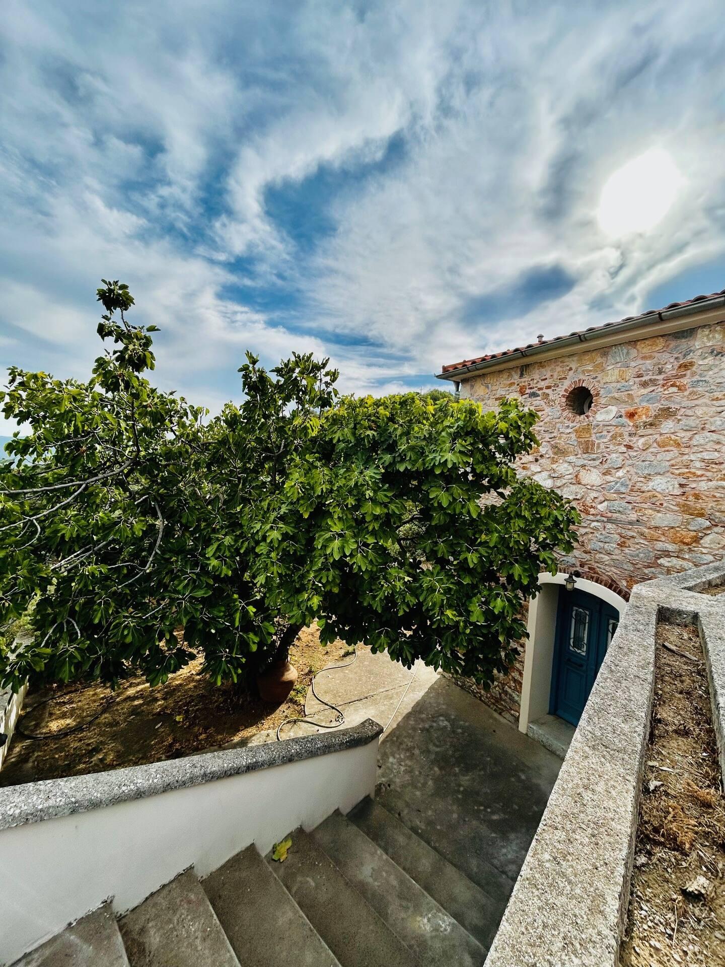 Πέτρινο, διόροφο σπίτι με κήπο και αυλή με θέα τους ελαιώνες της Λέσβου.